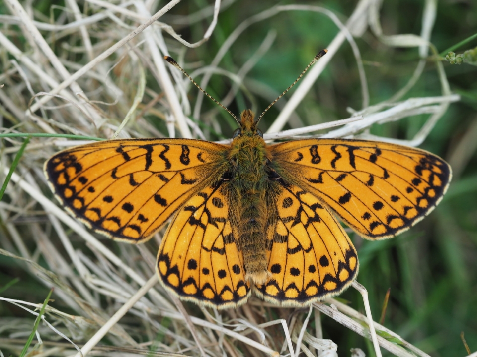 Inset photo: Small Pearl Bordered Fritillary, from above, courtesy David Dewsbury